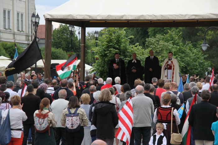 A régi magyar himnusz – Boldogasszony anyánk – közös eléneklése után a rendezvényt szervező Incze Zsolt református lelkész szólt az egybegyűltekhez. Felidézte, június 4-ét Magyarország keresztre feszítése napjának is nevezték, hozzátette azonban, a keresztre feszítés folyton ott volt történelmünkben, és ma is jelen van. József Attila Nem én kiáltok verséből idézve arra figyelmeztetett, különböző formákban köztünk van a Sátán, meg kell találnunk tehát a tiszta forrást, ami a keresztény ember számára Isten: aki megtartott bennünket, akinek köszönhetően a magyarság megmaradt és él, mert bízott benne. Hódmezővásárhelyi jó barátunk, Grezsa Ferenc biztató szavait ajánlotta az összegyűltek figyelmébe: az országot szét lehet darabolni, de a hazát nem. Ebben hittek nagyszüleink, dédszüleink is, akik nem panaszkodtak, hanem azért dolgoztak, hogy határokkal szétszakítva bár, de szülőföldünkön itthon lehessünk – és ez az üzenet a mai nap felelőssége, mondta. Beszéde után a reformátusok himnusza – Tebenned bíztunk eleitől fogva – hangzott el.