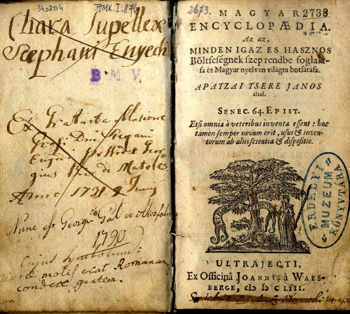 Apáczai Csere János (Apatzai Tsere Janos) Magyar Encyclopaedia című műve 1653-ból. Fotó: descartesfme.files.wordpress.com