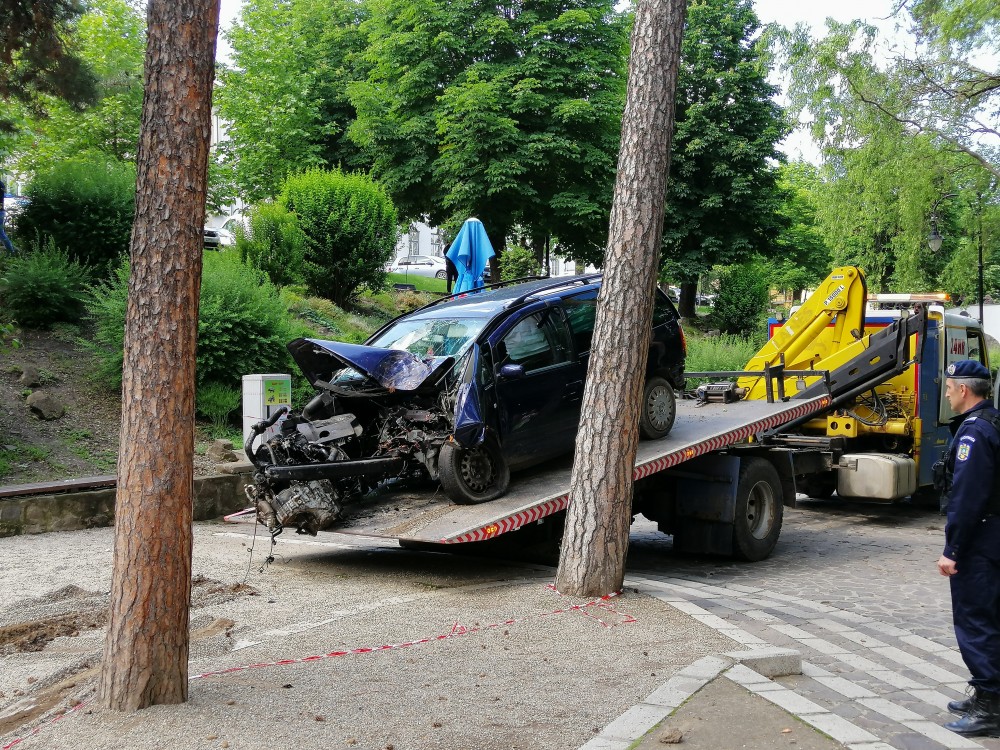 Az autó az Újvárossy-kertből (Victor Babeș utca) jött lefelé. A rendőrség szerint a 41 éves vezető elvesztette uralmát a jármű fölött, nem tudott kikanyarodni a Gábor Áron utcába. Szemtanúk úgy vélik, az autó fék nélkül maradt. Tény, hogy átrepült a marton, a felső sétányon és a sziklakerten, a játszótéren landolt, egy fenyőfa törzse állította meg. A vérző fejű vezetőt egy járókelő segítette ki az autóból, majd mentő kórházba szállította. A gépkocsit, melynek első része összetört, vontatóra helyezték, és elszállították. A rendőrség folytatja a kivizsgálást. (sz.)