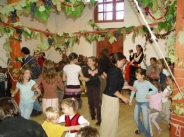 Aztán mesével folytatta, bekapcsolva a hallgatóságot, majd a Folker együttes zenéjére táncra perdültek a kisiskolások és óvodások, no meg szüleik, s folyt a mulatság. Közben elnézték, ha valaki szőlőt csent, később már enni is lehetett — módjával —, míg végül szabad prédává vált a fél mázsa szőlő. Ez, a tizennegyedik évadnyitó kivételesen szerdára sikeredett, ám a hagyományos gyerek táncházat továbbra is keddenként tartják — gyermeknapig.