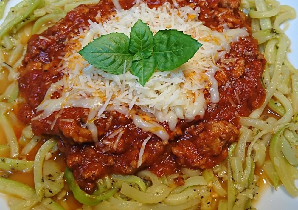 A cukkini a nyár egyik jellegzetes, sokoldalúan felhasználható zöldsége. Ha meguntuk a panírozott változatot és a főzelékért sem rajong a család, készítsünk belőle spagettit bolognai mártással. Ugyancsak az egyik népszerű főzős csoportból származik az alábbi ötlet, Czipoth Katalin konyhájából. Tetszés szerinti mennyiségű, julienne-re vágott (hosszanti irányban gyufaszál- vagy spagettivastagságú csíkokra darabolt) cukkinit egy kis olívaolajon pár perc alatt roppanósra dinsztelünk. Sóval, bazsalikommal és oregánóval ízesítsük, szórjuk meg resztelt parmezán sajttal és csak a végén sózzuk, hogy ne eresszen sok levet. Készítsünk hozzá fűszeres paradicsomszószt hagymával, fokhagymával, s ízlés szerint sózzuk, borsozzuk, ha szeretjük, szórjunk bele bazsalikomot, oregánót, majd kavarjuk össze zsírjára pirított darált hússal. Tálaláskor halmozzuk a cukkinire, szórjuk meg parmezánnal.