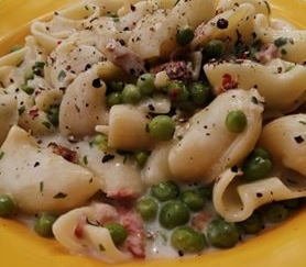 A gyors ebédek, vacsorák híveinek ajánlom a zöldborsós csőtésztát. Mindössze annyi időt vesz fel elkészíteni, amíg a laskánk megfő. Négy személy részére 30–40 dkg friss zöldborsó, 10 dkg császárszalonna, fél kg bordázott csőtészta, fél csokor friss petrezselyemzöld, 2 dl főzőtejszín, egy nagy marék reszelt parmezán vagy egy doboz – 20 dkg – tejszínes krémsajt szükséges (a tészta kagyló, tollhegy vagy hasonló is lehet). Egy nagyobb lábosban forraljunk sóval vizet a laskához.