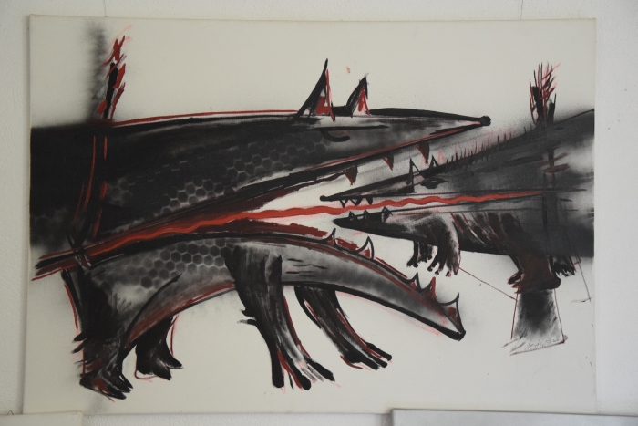 Nem véletlen, hogy a vendégművész első alkalommal kopjafák karcsú íveiből építkezik (Siska-Szabó Hajnalka: Múltidéző), és az ecset fuvallatai által ritmustáncba kezd velük. A szép formák konstruált rendben egy jól rendezett világ ígéretét adják (Haszmann Réka Júlia: Lendület). A többször visszatérők hagyják, hogy szemüket megfogja a mindennapok töredéke. Görbe tükörrel láthatjuk, hogy az itt élők élete egy globális disztópia sablonos lenyomata is. Ideológiák bukása filmszalagként pereg elő, és mellette vendégmunkások az első ember öntudatra ébredését veszítik el (Sárosi Csaba: A vírus, A boss).