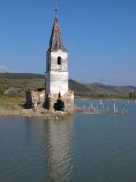 Tavasz közeledtén a sekély vízből, a tengernyi iszapból fölágaskodik az egyik elsüllyedt falu tornya, melyet sohasem nyilvánítottak műemléknek — lett hát a megalázottság emlékműve. Szárítkozik a lila, sziklaélű szélben, a tópocsolya tükrébe bámulva, ha volna harangja, elbőgné magát.