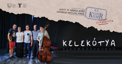 KELEKÓTYA-KONCERT. A Kovászna Megyei Művelődési Központ és Kovászna Megye Tanácsa által szervezett Kultúr-Kültér rendezvénysorozat következő megállója Kökös, ahol ma 18 órától az unitárius templom udvarán a 2001-ben alakult Kelekótya együttes gyermekkoncerttel szórakoztat kicsiket és nagyokat. A helyfoglalás az érkezés sorrendjében történik.