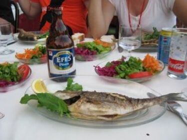 A Horgász utcai Vadász vendéglő ezt az ingyenreklámot szép szavaival érdemelte ki, s hogy az olvasó ne higgye, valami nagy-nagy vadas lakoma búvik meg az írás mögött, a fotós Albert Leventével bevalljuk: a jó seritalon kívül semmi sem kenegette torkunkat. A mellékelt sült halas fotó is Rodostóban készült, de számítunk rá, hogy a Horgász utcai vendéglőben is készíthetünk ehhez hasonlót.