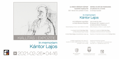 Sepsiszentgyörgyön ma 18 órától az Erdélyi Művészeti Központ Olt utca 2. szám alatti földszinti és harmadik emeleti kiállítótereiben megnyitják az In memoriam Kántor Lajos című kiállítást. A vendégeket Vécsi Nagy Zoltán, az Erdélyi Művészeti Központ vezetője köszönti. A kiállítást Szücs György művészettörténész, a Magyar Nemzeti Galéria tudományos főigazgató-helyettese nyitja meg. A tárlat megtekinthető február 27. és április 16. között keddtől péntekig 10–17, szombaton 10–18 óráig.