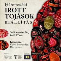 HÁROMSZÉKI ÍROTT TOJÁSOK. A Kovászna Megyei Művelődési Központ és a Kovásznai Városi Művelődési Ház közös szervezésében ma 17 órától a kovásznai művelődési ház udvarán megnyitják a Háromszéki írott tojások című szabadtéri kiállítást, amely április 15-ig tekinthető meg.