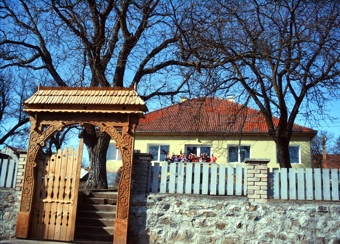 A kultúrotthon székely kapuja néhai Bálinth András munkája. Rajta Petőfi- és Gábor Áron-portré 1948-ból.