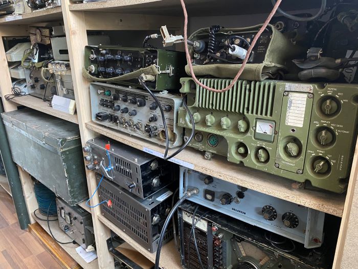 Csáky Ernő fiatalabb éveinek tárgyi tanúi: katonai rádió adó-vevők, a Varsó szerződés országainak mára megkopott, de még mindig látványos kommunikációs eszközei