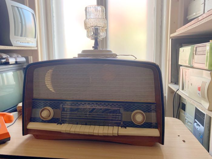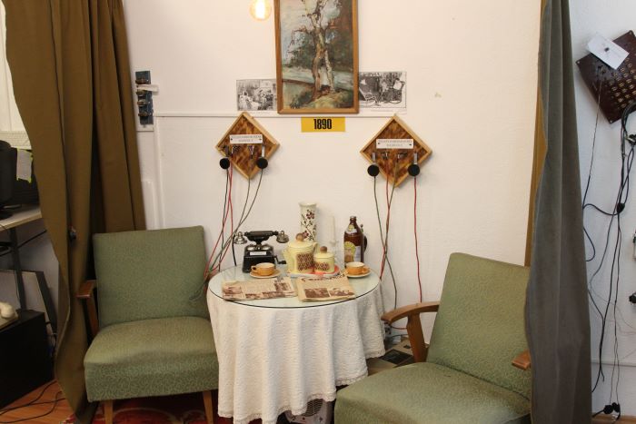 Hangos hírek a kávé mellé – egy korabeli a „beszélő újsággal” is felszerelt szobarészletet is láthatunk az iskolai kismúzeumban