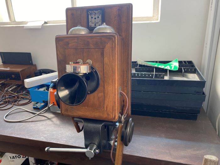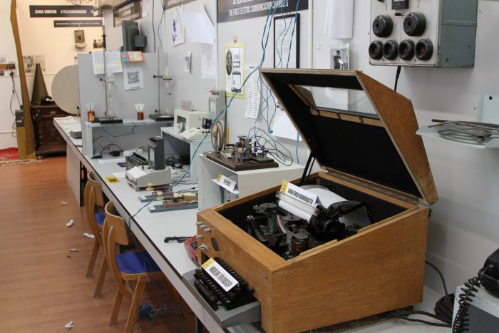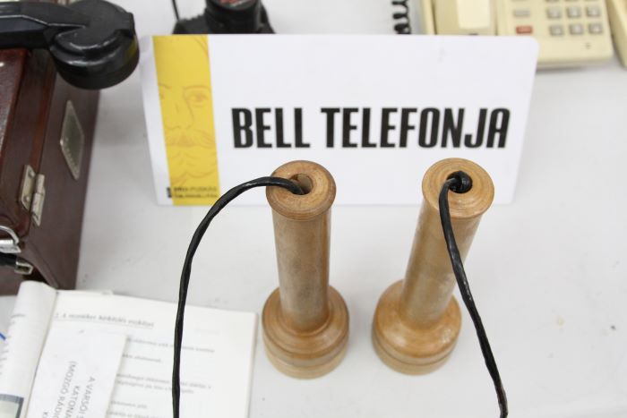 A telefon „atyjának” tartott Alexander Graham Bell készülékének hű másolata is megtekinthető a kismúzeumban