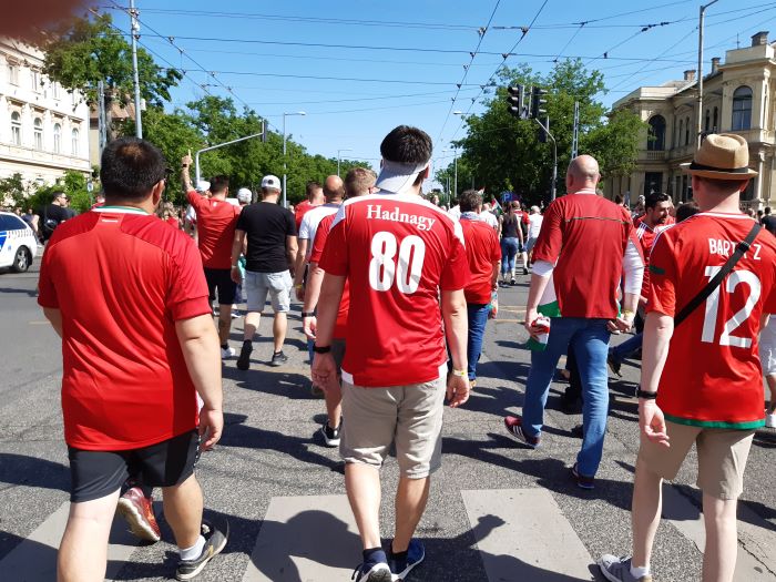 Az a jó, hogy Magyarországon legalább nem ütközünk majd olyan nyelvi korlátokba, mint Franciaországban öt évvel korábban, itt mindenki magyarul beszél – biztattam társaimat az utazás előtt, nem mintha bármelyikük is biztatásra szorult volna, de a számos bizonytalansági tényező övezte kiszállás előtt mégiscsak jó rögzíteni a biztos pontokat. Hello, guys, welcome – köszöntött szívélyesen angolul szállásadónk, a brit Richard. Miután megtudta, hogy több mint 700 kilométert utaztunk a meccsre, angol hidegvérrel állapította meg azt is, amit családtagjaink, barátaink valószínűleg régóta tudnak rólunk, de így kimondani mégsem szoktunk, hogy mi bizony nagy futballrajongók vagyunk. Az, hogy kicsit később a karszalagot átadó önkéntes is angolul köszöntött, bizonyára annak köszönhető, hogy Budapesten igencsak felkészültek a vendégszurkolók fogadására – semmi esetre sem az utunk kezdetén általam megfogalmazott tétel cáfolására történt.