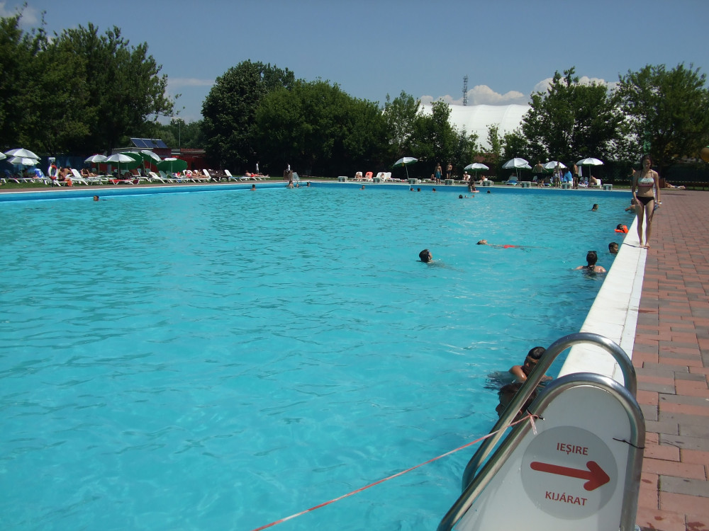 Egy olimpiai méretű úszómedence, egy kevésbé mély tanuló úszómedence, egy ötméteres csúszdát fogadó gyermekmedence, egy 40 cm mély pancsoló és egy sodrófolyosóval, nyaki masszírozókkal ellátott „élménymedence” várja a látogatókat, a vízhőmérséklet: 22–25 Celsius-fok. A 14 éven aluli gyermekek csak nagykorú felügyelete mellett vagy aláírt szülői engedély leadása esetén léphetnek be a strand területére.