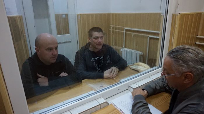 Szőcs Zoltán és Beke István az üvegfalon keresztül beszélgetett az őket meglátogató Fejér László Ödönnel