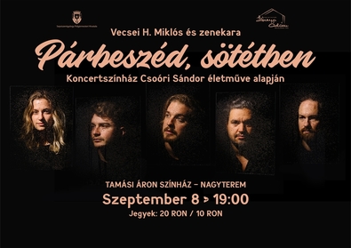 KONCERTSZÍNHÁZ. Ma 19 órától Sepsiszentgyörgyön a Tamási Áron Színház nagytermében megtekinthető a Vecsei H. Miklós és csapata által létrehozott Párbeszéd, sötétben című koncertszínházi előadás, amely Csoóri Sándor munkássága előtt tiszteleg. Az előadás végén közönségtalálkozóra kerül sor, ahol a produkció témáját érintő kérdésekre válaszolnak. Az ülőhelyek száma korlátozott. Jegyek 10 és 20 lejes áron kaphatóak a városi kulturális szervezőirodában.