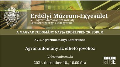 Az Erdélyi Múzeum-Egyesület XVII. agrártudományi konferenciájának témája: Agrártudomány az élhető jövőhöz, és a járványhelyzetre való tekintettel az online térben tartják pénteken 9.40 órától.