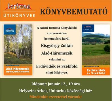 Kisgyörgy Zoltán két útikönyvét – Alsó-Háromszék, illetve Erdővidék és Székföld – mutatják be január 12-én 19 órától Árkoson az unitárius közösségi házban és január 13-án 16 órától Sepsibükszádon a kultúrotthonban a baróti Tortoma Könyvkiadó szervezésében.