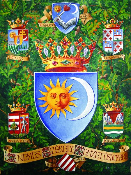 Szintén az erdélyi heraldikus műve „A Nemes Székely Nemzet ősi címere” című kompozíció, mely a székelyek napos-holdas címerét mutatja, a Székelyföld területére eső vármegyék címereivel körülvéve.