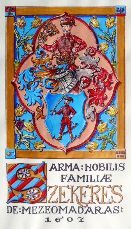 A tárlaton egy tipikus székely családi címert, a mezőmadarasi Szekeres család címerét mutatjuk be, melyet Rákóczi Zsigmond fejedelem adományozott mezőmadarasi Szekeres Gergelynek 1607. október 29-én, Kolozsváron kelt, függőpecséttel megerősített oklevelével. Ez tipikus székely családi címer: a szablyát tartó vörös darabont kék mezőben, továbbá az oromdíszben megismételt katona ezúttal búzakalászokat tart – utalva arra, hogy valójában földműveléssel foglalkoztak, de ahányszor szükség volt, hadba szálltak a haza védelmében.