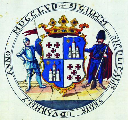 A felső sorban a székely székek címerei, címeres pecsétjeinek rajza kapott helyet.