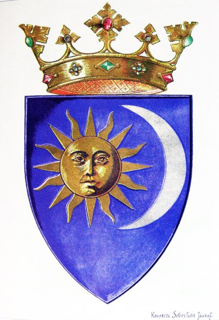 Az alsó kép az egyetlen székely származású erdélyi fejedelem, siménfalvi Székely Mózes címere. Szamosközi István történetíró leírásában így szerepel: „Címere nem nemzetségi címer volt, hanem a maga vitézségével érdemelte ki István királytól: rajta két ágaskodó oroszlán tart első lábával egy kivont kardot, míg felül két csillag, valamint két-két növekvő és fogyó hold látható.” A lengyel királlyá választott Báthori István erdélyi fejedelem az adományozó. A címer megjelent Székely Mózes tízdukátosán, valamint Gyulafehérvári Pál Deák címerkönyvének másolatában is fennmaradt.