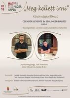 A magyar széppróza napja alkalmából ma 18 órától Meg kellett írni címmel kerül sor közönségtalálkozóra Csender Levente és Szálinger Balázs József Attila-díjas írókkal Sepsiszentgyörgyön a Tein Teaházban. Az írók beszélgetőtársa a rendezvényen Lövétei Lázár László költő, műfordító. A rendezvény az érvényben lévő járványügyi előírások szerint zajlik. Szervezők: Sétatér Kulturális Egyesület (Kolozsvár), Bod Péter Megyei Könyvtár, Tein Teahouse, Magyar Írószövetség, Arany János Alapítvány (Budapest).