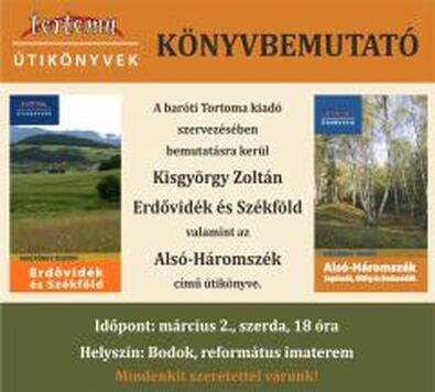 ♦ A baróti Tortoma Kiadó szervezésében Kisgyörgy Zoltán Erdővidék és Székföld, valamint Alsó-Háromszék című útikönyveit ma 18 órától Bodokon a református imateremben, pénteken 17 órától Gidófalván a tanácsteremben mutatják be.