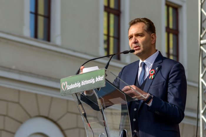Felidézte,pár száz kilométerrel odébb háború dúl, „amely az Ukrajnában élő nemzeti közösségek, így a kárpátaljai magyarság jelenét és jövőjét is veszélyezteti”, arra kérte a jelenlevőket: „fordítsuk ma fejünk Kelet felé, és mondjuk ki, hogy mélységesen elítéljük az orosz agressziót, mert ártatlan emberek, idősek, asszonyok, gyerekek millióinak életét oltja ki vagy sodorja veszélybe, milliókat tesz földönfutóvá. Legyünk szolidárisak szomszédainkkal, álljunk ki a kárpátaljai magyarok mellett, és erőnkhöz mérten adjunk meg minden segítséget a háború elől menekülőknek!” Az elnyomó hatalom arca nem változik, feladni azonban – a félelem, a tehetetlenség vagy a kétségbeesés dacára – ma sem lehet – mondotta, és felhívta a figyelmet arra, hogy ebből a háborúból senki sem, nyer, ezzel a háborúval mindenki veszít.