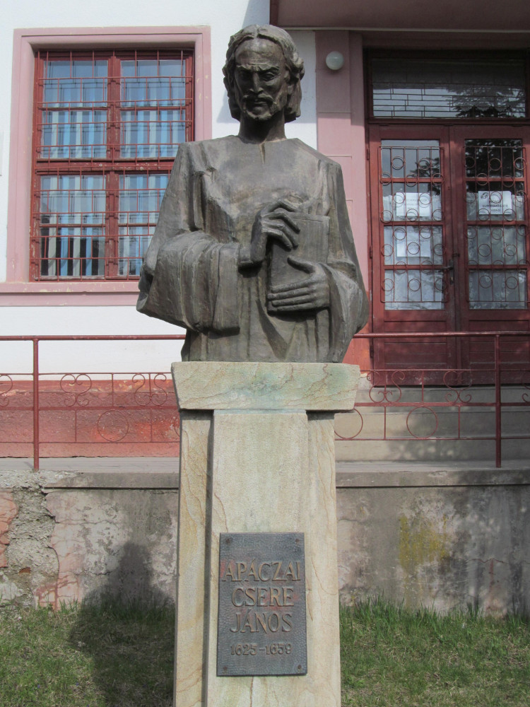 Az emlékezéseket – miként a kakaslövés húsvéti népszokást is – sok veszély fenyegette akkortájt, ám még a legsötétebb diktatúra is fejet kellett hajtson Apáczai és a népszokás nagysága előtt. 1975-ben mellszobrot állítottak a falu nagy szülötte emlékére a nevét viselő helybeli iskola előterében (Elena Hariga Avramescu bukaresti szobrászművész alkotása). A szobor avatásakor Ortutay Gyula néprajzkutató, a Magyar Népköztársaság akkori közoktatásügyi minisztere elhelyezte az emlékezés koszorúját, és a szülőfalu I–VIII. osztályos iskolája is felvette jeles szülöttének nevét.