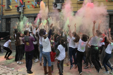 Pénteken kora délután szó szerint színfelhő indította az ifjúsági udvar programsorozatát, azt követően, hogy a fiatalok lelkes csapata Vargha Fruzsina alpolgármesterrel az élükön mintegy hívogatóként zászlókkal és feliratokkal a Szabadság térről a volt dohánygyárhoz vonult, majd a színpad előtt egy rendhagyó produkciót adott elő Színezzük újra – Color Party címmel, színes festékporral szórva tele önmagukat, valamint a teret. A produkcióhoz a sepsiszentgyörgyi iskolarádiók lemezlovasai biztosították a megfelelő zenei aláfestést. Ezt követően Vargha Fruzsina rövidre szabott köszöntője következett, mellyel úgymond hivatalosan is megnyitotta kapuit az ifjúsági udvar.