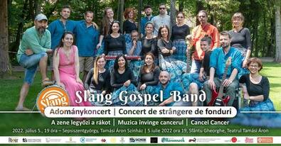 JÓTÉKONYSÁGI KONCERT. A Voces-ProArt Kulturális Egyesület szervezésében július 5-én, kedden 17.30 és 20 órától a sepsiszentgyörgyi és csíkszeredai zenészekből alakult Slang Gospel-Band együttes adománygyűjtő koncertet tart Sepsiszentgyörgyön a Tamási Áron Színház nagytermében A zene legyőzi a rákot címmel. Az adományokból begyűlt összeget Cserkész Adalbert Jimmy kezelési költségeinek fedezésére fordítják. Az együttes tagjai: Bene Zoltán (billentyűk), Ferenczi Tihamér (zongora), Gáspár Álmos (gitár), Kerezsi Csongor (basszusgitár), Cserkész Adalbert Jimmy (dobok), Luiza Zan énekesnő és a 16 tagú Snaps és Voces kórus tagjai. A belépés ingyenes, a helyek száma korlátozott. Ülőhelyet a sepsiszentgyörgyi központi jegyirodában lehet kiváltani hétfőn 16 óráig. A szabadon maradt helyekre az előadások előtt a helyszínen is lehet ülőhelyet váltani.