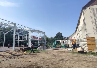 Már az égnek mered a jövendőbeli tornaterem acélszerkezete, az épület egyébként nem csak a sportolást, hanem a zenét is szolgálja majd, ugyanis a zenetagozatos diákok részére több próbatermet is kialakítanak benne.