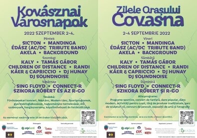 SPORTPROGRAMOK. Ma: 15 órától barátságos labdarúgó-mérkőzés, U15: Kovásznai Sportegyesület–ACSSASF Jövő Sepsiszentgyörgy – a Városi Stadionban; 17 órától ügyességi kerékpár- és rollerverseny gyerekeknek a sportpályán, a vajnafalvi sportcsarnok mellett; 18 órától öregfiúk vegyes kézilabda-mérkőzés a vajnafalvi sportcsarnokban. Szombaton: 7.30–13.30-ig ELKLIM-horgászverseny a kovásznai horgásztónál (jelentkezés a 0740 372 155-ös telefonon); 9 órától Kovászna, 2022 minifocikupa a Dózsa György sportpályán (műfüves); 16 órától labdarúgó-mérkőzés, gyermekek A1, U19: Kovásznai Sportegyesület–Gelencei Nemere Sportegyesület – a Városi Stadionban; 18 órától labdarúgó-mérkőzés, 4. Liga, felnőttek: Kovásznai Sportegyesület–Szentkatolnai Sportegyesület – a Városi Stadionban. Vasárnap: 9 órától asztalitenisz-verseny a vajnafalvi sportcsarnokban; 11 órától labdarúgó-mérkőzés: Kovásznai Öregfiúk–Kézdiszentléleki Öregfiúk – a Városi Stadionban; 13 órától lábteniszverseny a vajnafalvi sportcsarnokban.