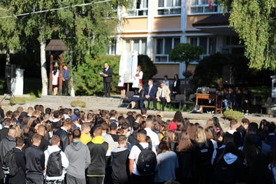 Benedek-Huszár János polgármester elnézést kért minden érdekelttől, hogy a megnyitót követően nem a befejezett új iskolaépületben kezdődik a tanév – bár a kivitelezőktől erre nemcsak szóban, de írott formában is többször ígéretet kapott. Az elöljáró aggodalmát fejezte ki: vajon a világ milyen irányba halad, vajon a mai nemzedéknek is át kell élnie azt, amit szüleik generációjának, amikor félni kellett az országok elridegülése miatt, amikor nem tudtuk, lesz-e, mivel kimelegítenünk otthonunkat, amikor gyertya lángja mellett kellett tanulni és közvilágítás híján sötétek voltak az utcák? „Nagyon sötét képet festettem itt a jövőről, de egy dolgot viszont megpróbáltunk megtenni, hogy minél inkább felborul a világ, annál inkább törekszünk itt egymás között a békére, az összefogásra, a harmóniára és arra, hogy bármilyen kritikus helyzetre felkészülve ti, diákok a tanárok vezetésével próbáljátok a lehető legjobbat kihozni magatokból, hogy egy következő újra felvirradó európai hajnalon ne a sereghajtók, hanem az éllovasok között lehessetek” – fogalmazott.