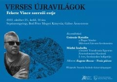 Verses újravilágok címmel kerül sor Fekete Vince költő szerzői estjére Sepsiszentgyörgyön ma 18 órától a Bod Péter Megyei Könyvtár Gábor Áron Termében. Közreműködnek: Császár Katalin, a Plugor Sándor Művészeti Líceum fuvolatanára és Máthé Izabella, a brassói Transilvania Egyetem Zenetudományi Karának I. éves, fuvolaszakos hallgatója. Műsoron: Eugène Bozza Trois pièces című alkotása.