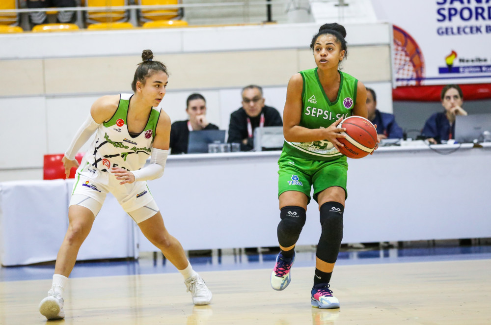 Hazai kosárral indult a Nesibe Aydin–Sepsi-SIC találkozó, amelynek első negyedét kissé kaotikus játék jellemezte. Mindkét oldalon sok volt a hiba, a kapkodás, és egyik csapat sem tudta a tőle megszokott játékát bemutatni. Az 5. percben hárompontos volt a török alakulat előnye (8–5), de kevéssel később a zöld-fehérek kiegyenlítettek 10-re. A folytatásban Queen Egbo duplájával ismét vezetett az ankarai együttes (12–10), a soron következő bő három percben pedig nem született újabb kosár. A játékrész 12–12-vel ért véget, miután Khadijiah Cave értékesített két büntetődobást. A második negyed eleje a házigazdákról szólt, akiknek sikerült ellépniük a Sepsi-SIC-től (19–14), ám ekkor berobbant Maria Jespersen, aki három egymás utáni triplával fordított, és a szentgyörgyi lányok először vezettek a mérkőzésen (21–23). Innen felváltva pontoztak a csapatok, s az első félidő hajárjában azonban lányaink jeleskedtek, akik plusz hárommal vonultak öltözőbe (30–33).