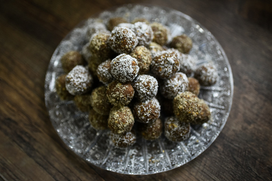 Elkészítése: A kekszet ledaráljuk, hozzáadjuk a vajat, a cukrot, a dzsemet, a kakaót és a rumeszencet, majd összedolgozzuk – könnyen formázható masszát kell nyernünk. A meggyszemeket egy szűrőben lecsepegtetjük a pálinkától. Ezután diónyi darabokat szaggatunk a masszából, a tenyerünkben ellapítjuk, a közepébe helyezünk egy meggyszemet, majd gombócot formálunk belőle. Az így nyert gombócok felét darált dióba-, míg a másik felét kókuszreszelékbe forgatjuk.