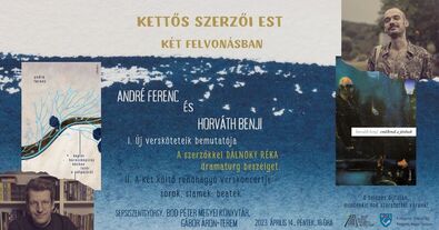 A sepsiszentgyörgyi Bod Péter Megyei Könyvtár Gábor Áron-termében ma 18 órától egy rendhagyó szerzői est keretében André Ferenc és Horváth Benji költők mutatják be új verskötetüket. A szerzőkkel Dálnoky Réka dramaturg beszélget. A könyvbemutatót a két költő koncertje követi, amelynek során versek, slamek, beatek hangzanak el.