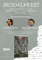 Ma 19 órától irodalmi estre várják az érdeklődőket a Baróti Ifjak Közössége (BRIK) irodájában (Vállalkozóközpont, első emelet). Meghívottak: Lázár Kinga fiatal költő (Barót) és Sántha Attila József Attila- és Babérkoszorú-díjas költő (Kézdivásárhely). Az est keretében bemutatásra kerül Sántha Attila Ágtól ágig című kötete, amely a szerző korábbi köteteivel együtt megvásárolható lesz a helyszínen.
