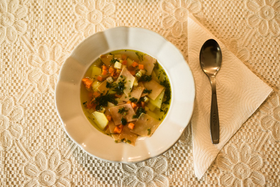 Hozzávalók: 1 hagyma, 3 nagy murok, 1 nagy petrezselyem, 1/4 zeller, 2 pityóka, maréknyi petrezselyemzöld, 0,5 dl olaj, só; az erőléhez (alapléhez): 1 csirke aprólékja (farhát, nyak, kaparó, azaz a lábak, szárnyak), 1–2 murok, 1 petrezselyem, 1 szelet zeller, 1 kis fej hagyma; a lebbencshez: 1 tojás, kb. 10 dkg liszt, csipetnyi só.