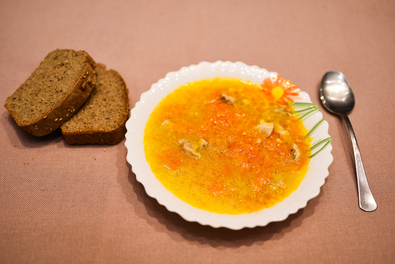 Elkészítése: A csirkemellet felkockázzuk, sóval, borssal, fűszerpaprikával megszórjuk, és az olívaolaj felén fehéredésig pirítjuk. A murkot lereszeljük a nagy lyukú reszelőn, a maradék olívaolajon megdinszteljük, közben hozzáadjuk a zúzott fokhagymát, majd később a pirított csirkemellet, és összekeverjük. Az egészet felöntjük kb. 3 liter forró vízzel, és lefedve lassú tűzőn főzzük, amíg a murok és a csirke megpuhul. A lisztből és tejfölből eresztéket készítünk, belekeverünk kevés forró levest, majd sűrítjük az ételt, sózzuk – ha szükséges – és felforraljuk. Friss kenyérrel tálaljuk. A levest pépesítve csecsemőknek is adhatjuk.