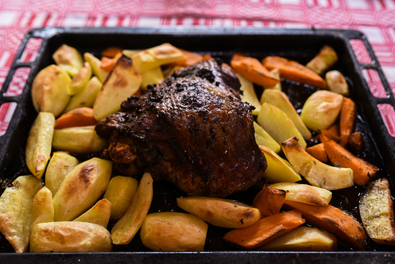 Ezt a fogást sütőben is el lehet készíteni. Ebben az esetben a húst 200 Celsius-fokon 1,5–2 órán át sütjük.