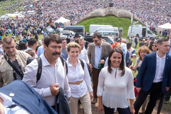 Felemelő érzés megélni a nemzet összetartozását – összegezte Novák Katalin a Csíksomlyói búcsún való részvétel élményét szombaton, miután több százezer zarándokkal együtt vett részt a Kis- és Nagysomlyó közti hegynyeregben celebrált pünkösdszombati szentmisén. A köztársasági elnök az őt kérdező újságíróknak elmondta: aki hozzá hasonlóan nem volt még a csíksomlyói búcsún, az talán nem is tudja megérteni azt, hogy mennyire felemelő érzés megérezni, megélni a nemzet összetartozását. „Elhangzott ma a szentbeszédben az, hogy egy édesanya boldog, ha együtt van a család. Igaz ez egy államfőre is: egy államfő boldog, ha együtt van a nemzet és én ezt a nemzeti egységet éltem meg itt ma. Jó volt az Úristent együtt imádni” – mondta a köztársasági elnök.