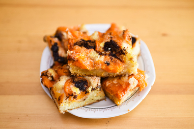 ElkészÃtése: Az élesztÅ‘t kevés cukros tejben felfuttatjuk. A barackot kimagozzuk. A lisztet dagasztótálba szitáljuk, beleütjük a tojásokat, hozzáadjuk a sót, a felfuttatott élesztÅ‘t, a maradék cukrot és az olajat, majd összegyúrjuk, közben annyi langyos tejet öntünk hozzá, hogy rugalmas tésztát kapjunk. Kelesztés nélkül lisztezett lapÃtón ujjnyi vastagra nyújtjuk, majd vékonyan zsÃrozott tepsibe nyomkodjuk. A tetejét megszórjuk grÃzzel, szorosan egymás mellett megrakjuk a félbevágott barackokkal, rákanalazzuk a tejfölt és megszórjuk cukorral meg fahéjjal. Letakarva kb. 15 percet kelni hagyjuk. ElÅ‘melegÃtett sütÅ‘ben (150–170 Celsius-fokon) kb. 20 perc alatt megsütjük. Kockára vágva tálaljuk.