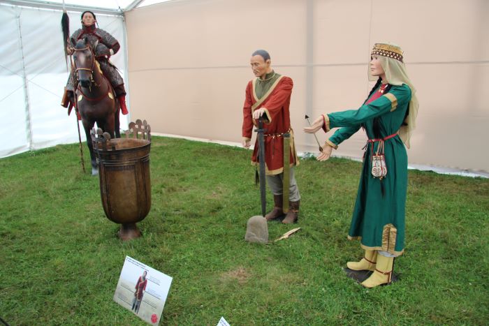 A női és a férfialakon korabeli viselet, a szomszédos kisebb sátorban pedig szintén temetkezésekből származó fegyver- és ékszerleletek másolatai voltak megtekinthetőek. Hogy miért tartották fontosnak mindezt megmutatni, Bíró András Zsolt válaszolta meg: hogy látni és átélni lehessen, elődeink nemcsak tettekben voltak nagyok, hanem a távoli múltból hozott tudásnak köszönhetően gazdag kultúrával rendelkeztek, kiváló kézműveseik és fegyverkovácsaik voltak.