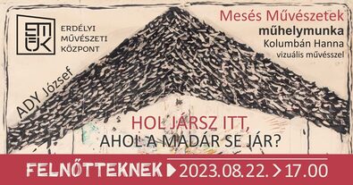 MŰHELYMUNKA FELNŐTTEKNEK. Az Erdélyi Művészeti Központ (EMŰK) augusztus 22-én, kedden 17 órától Mesés művészetek címmel Kolumbán Hanna vizuális művész vezetésével háromórás műhelymunkára várja azokat a felnőtteket, akik a Hol jársz itt, ahol a madár se jár? témában szeretnének alkotni festészeti és kollázstechnikával. A tevékenységen az EMŰK jelenlegi tárlatára, Ady József alkotásaira reflektálhatnak az érdeklődők. A foglalkozáson való részvétel díjmentes, azonban regisztrációhoz kötött. A helyek száma korlátozott. Jelentkezni lehet az emuksepsi@gmail.com e-mail-címen vagy a 0757 047 714-es telefonszámon. A foglalkozás helyszíne: az EMŰK sepsiszentgyörgyi székháza, Olt u. 2. szám, földszinti kiállítótér.