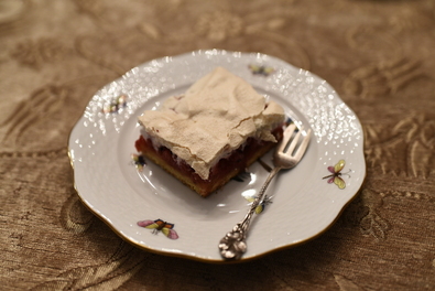 Hozzávalók: a pitetésztához: 30 dkg liszt, 10 dkg cukor, 20 dkg vaj, 1 kiskanál sütőpor, csipetnyi só, 1 citrom reszelt héja, 4 tojássárgája; a töltelékhez: 1 kg szemezett piros ribizli, 2 evőkanál gríz (búzadara); a tojásfehérjehabhoz: 4 tojásfehérje, 30 dkg porcukor.