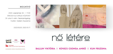 KÉPZŐMŰVÉSZETI KIÁLLÍTÁS. A sepsiszentgyörgyi Liszt Intézet a Magyar Művészeti Akadémia támogatásával hozta létre a Nő létére című, Ballun Viktória, Kovács Csonga Anikó és Kun Fruzsina alkotásait felölelő képzőművészeti kiállítást, melynek megnyitójára ma 17 órakor kerül sor az Árkosi Kulturális Központban, Sepsiszentgyörgyön az Olt utca 6. szám alatt. A kiállítás kurátora: Szebeni Zsuzsanna, a sepsiszentgyörgyi Liszt Intézet vezetője. A különleges képzőművészeti anyag három hétig, október 17-ig tekinthető meg.