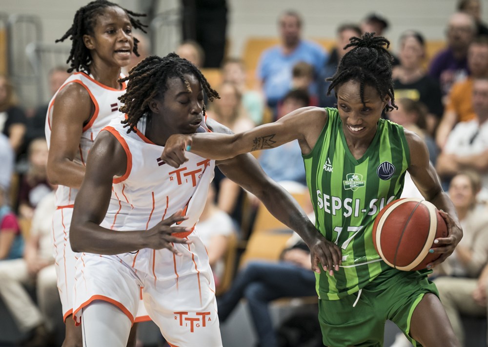 Másfél perc kosárcsend vezette fel a Sepsi-SIC rigai vendégjátékát, a találkozó első pontjait a házigazdák szerezték. A zöld-fehérek hamar válaszoltak, a folytatásban felváltva vezettek a csapatok, teljesítményüket rengeteg hiba tarkította. Az első negyed felénél 8–7 volt a TTT Riga javára, de Hrisztova triplájával és Mununga kétpontosával lépéselőnybe kerültek lányaink (8–12). A játékrész hajrájában sem javult a párharc színvonala, és tízpercnyi küzdelem után plusz kettővel vezettek Martins Gulbis tanítványai. A második szakasz elején ismét megszerezte a vezetést a Sepsi-SIC, ám a folytatásban is hibát hibára halmozott a két együttes. A 17. percben Nyström büntetőjével 5 pontos előnyre tettek szert a háromszékiek, de a lettek keményen harcolva feljöttek egy pontra (23–24). A nagyszünet előtt kapkodva, olykor ötlet nélkül kosaraztak a szemben álló felek, és 27–30-as állásnál vonultak szünetre a csapatok.